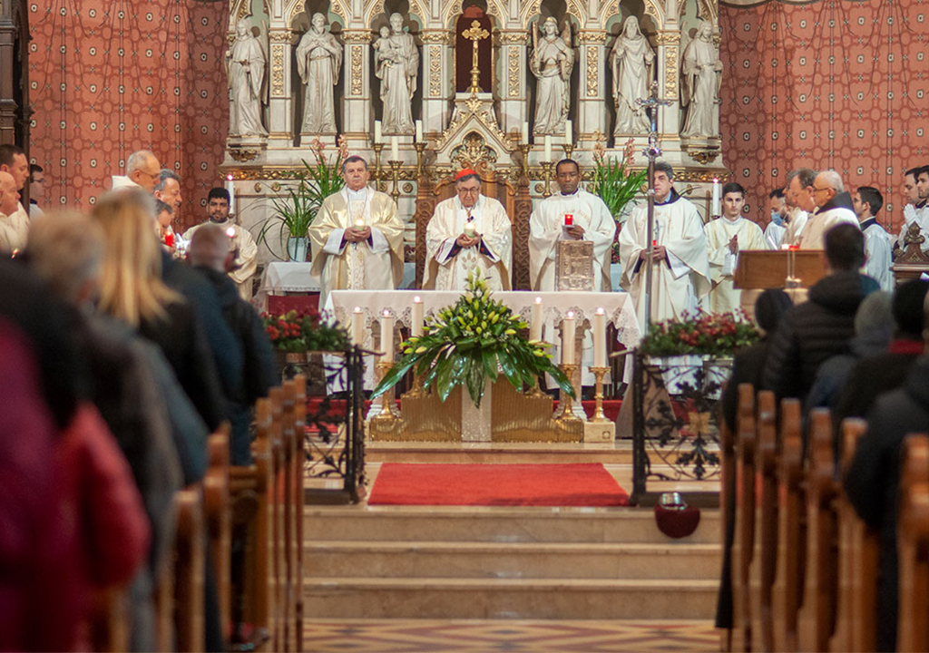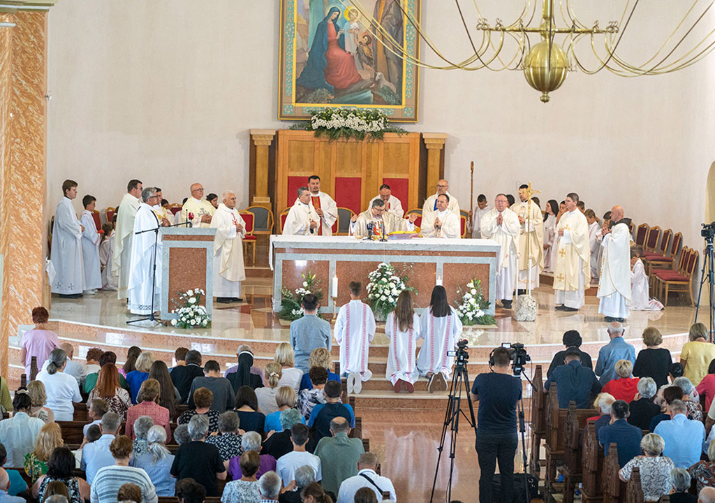 Pontifikalno euharistijsko slavlje predvodio je vrhbosanski nadbiskup metropolit mons. Tomo Vukšić, uz koncelebraciju apostolskog nuncija u BiH, nadbiskupa Francisa Assisija Chullikatta, provincijala Franjevačke provincije Bosne Srebrene, fra Zdravka Dadića, generalnog vikara Vrhbosanske nadbiskupije, mons. Slađana Ćosića te još 30-ako svećenika među kojima su bili i župnici sarajevskih župa, javlja Nedjelja.ba.