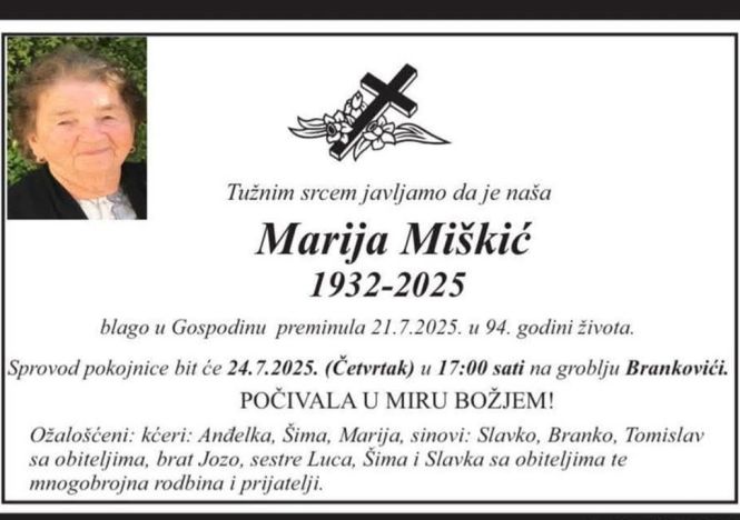 Preminula majka pokojnog svećenika Ilije Miškića